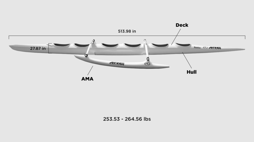 The ARE Tahiti V6 Matahina is one of the most proven 6 person racing canoes in outrigger paddling. It has long been recognized as a top choice in team competition worldwide, and it was selected as the 6 man racing canoe for the IVF World Sprint Championships in 2022, 2023, and 2024.